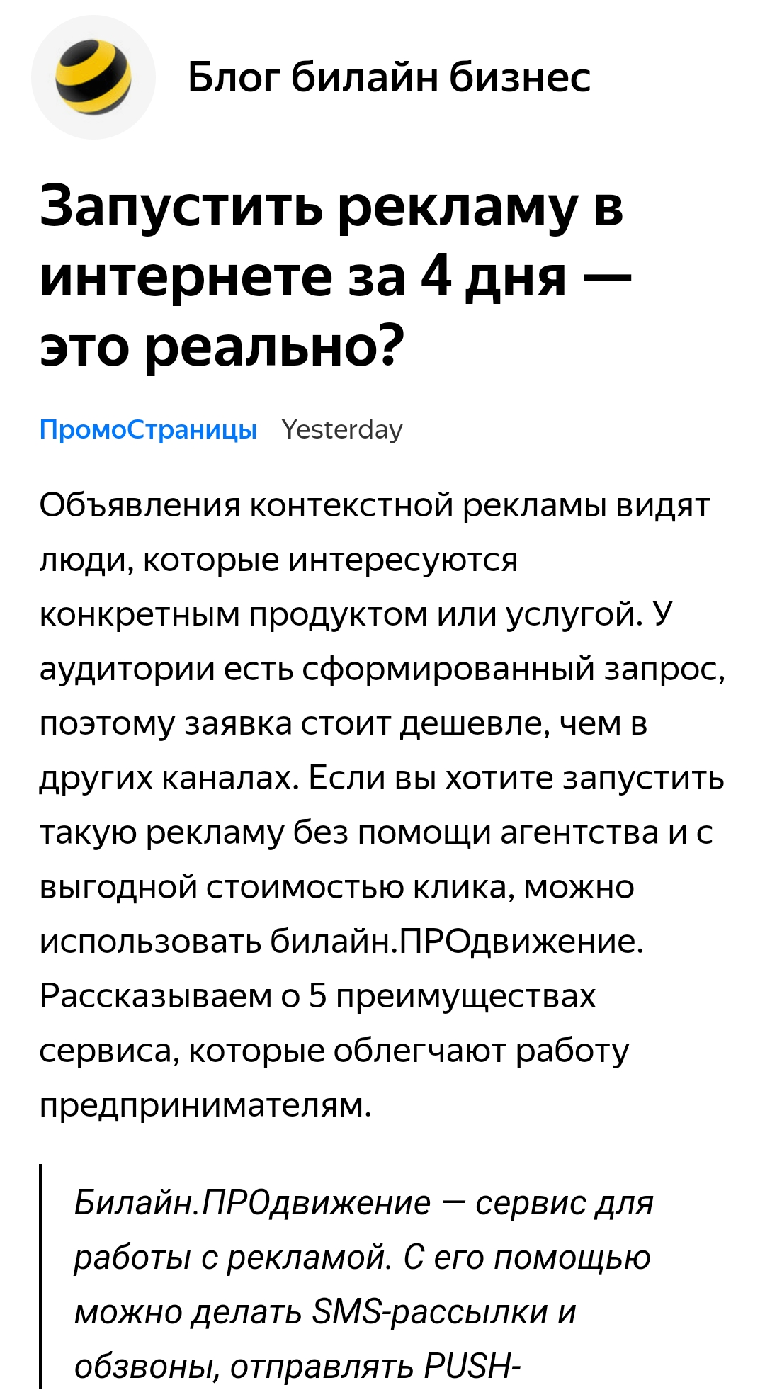 Если результаты теста хорошие, продолжаем крутить лучшие статьи и пишем другие. Регулярно отключаем неэффективные тексты, добавляем новые, переупаковываем старые публикации. Можем настроить ретаргет в Директе